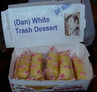 Had a fun New Year's Eve last night at Jeff & John's white trash party. They had lots of handsome men attending, and the trashy decor was done well, especially the Xmas tree thrown down the stairwell. I wore my shirt with the velcro letters which spelled out "THE OTHER WHITE TRASH." Someone kept removing the last "T," turning "TRASH" into "RASH." Whoops! Double-O-Steven and I left the party around 11pm to head to the Lone Star. No cabs available, we took Muni to Van Ness and walked from there. The bar wasn't near as crowded as last year, but it was a very good crowd. We had a good time, and Rhoda gave us a ride home. Woohoo!